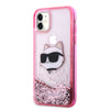 Apple iPhone 11 Kılıf Karl Lagerfeld Sıvılı Simli Choupette Head Dizayn Kapak