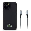 Apple iPhone 15 Kılıf Lacoste Orjinal Lisanslı PU Pike Desenli Arka Yüzey İkonik Timsah Dokuma Logolu Kapak + Type-C Kablo 1.5m