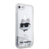 Apple iPhone SE 2022 Kılıf Karl Lagerfeld Sıvılı Simli Choupette Head Dizayn Kapak